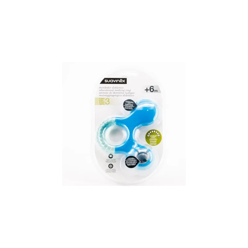Suavinex Mordedor Didáctico Etapa 3 sirve para hacer drenar la ansiedad y la molestia que experimentan los bebés en su proceso de dentición.