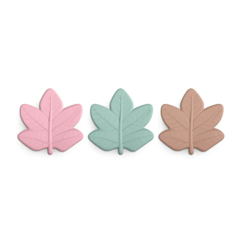 Mordedor de silicona en forma de hoja, suave y flexible, diseñado para aliviar las encías del bebé durante la dentición. Forma parte de la colección Poetry de Suavinex.