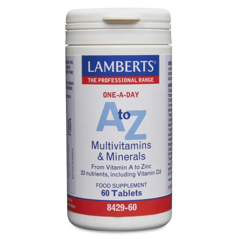 Lamberts A-Z Multi es un complemento alimenticio que combina un complejo de vitaminas liposolubles (A, D, E) y vitaminas hidrosolubles (B y C), junto con minerales como hierro, calcio y zinc. Está formulado para contribuir al aporte diario de micronutrientes esenciales en situaciones de alimentación restringida o incremento de las necesidades nutricionales, como actividad física intensa, cambios de dieta o etapas de crecimiento.