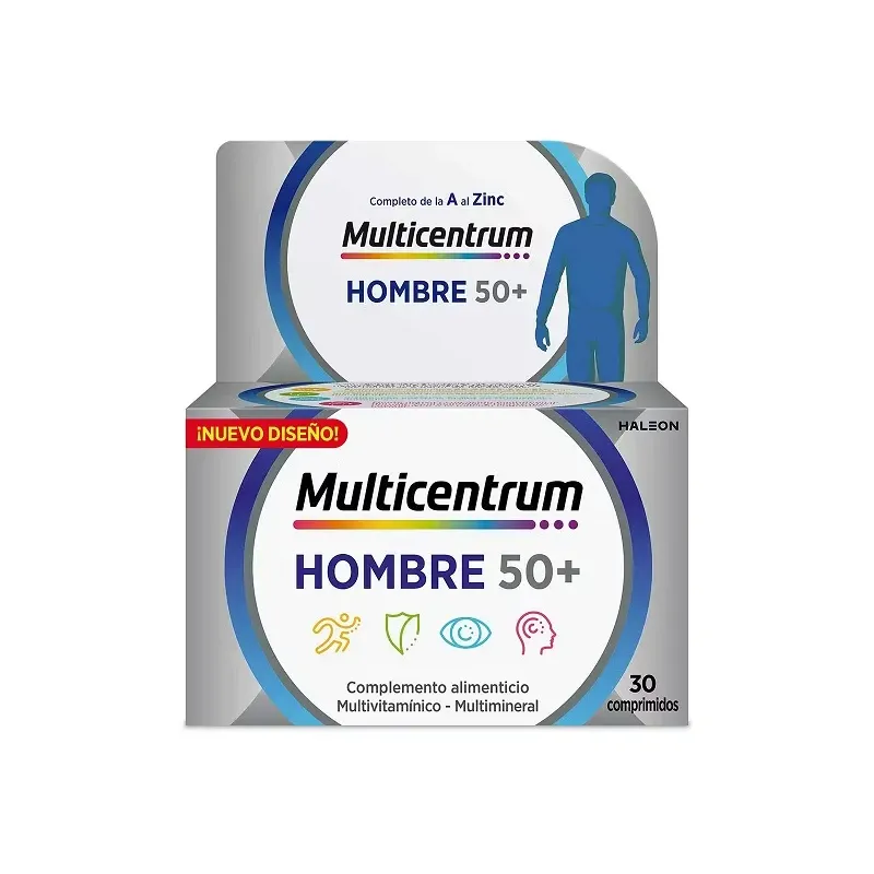 El complemento alimenticio Multicentrum Hombre 50+ ha sido formulado específicamente para cubrir las necesidades nutricionales de hombres a partir de 50 años.