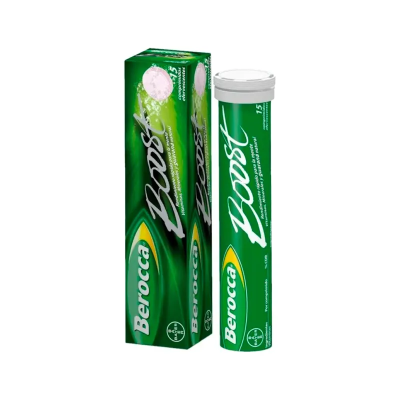 Berocca Boost es un complemento alimenticio basado en un complejo de vitaminas, minerales y extracto de guaraná de origen natural. Su formulación incluye vitaminas del grupo B, vitamina C, magnesio, zinc, calcio y guaraná, un ingrediente que aporta sustancias naturales con efecto estimulante. Esta combinación pretende contribuir al mantenimiento del rendimiento intelectual y al equilibrio energético a lo largo del día, especialmente en periodos de elevada carga de trabajo mental o físico. Se recomienda como apoyo nutricional puntual en situaciones de fatiga pasajera, estudios intensivos, jornadas prolongadas o actividades que requieran concentración continuada.