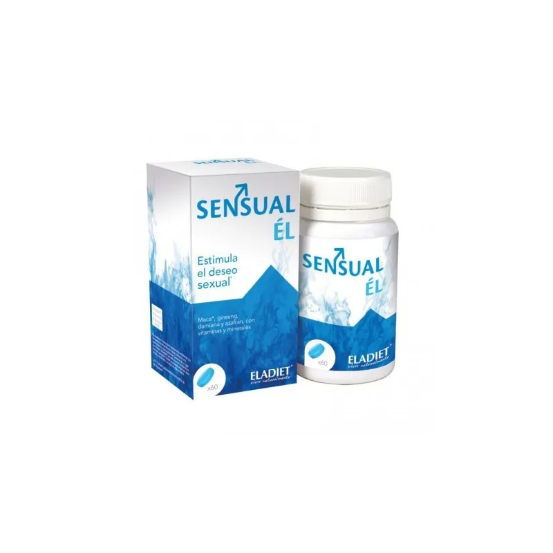 Eladiet Sensual Él es un complemento alimenticio en comprimidos que combina extractos de maca, ginseng, azafrán y damiana junto con minerales y vitaminas del grupo B. Su formulación está orientada a completar la ingesta de nutrientes que intervienen en el metabolismo energético, la función endocrina masculina y el bienestar emocional.