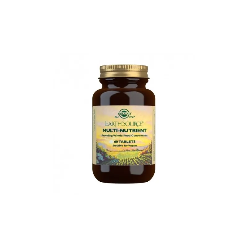 Solgar Earth Source es un complemento alimenticio en comprimidos que combina minerales, vitaminas y extractos vegetales. Su formulación está diseñada para apoyar el aporte diario de nutrientes esenciales y contribuir al mantenimiento de funciones normales en situaciones de aumento de requerimientos nutricionales.