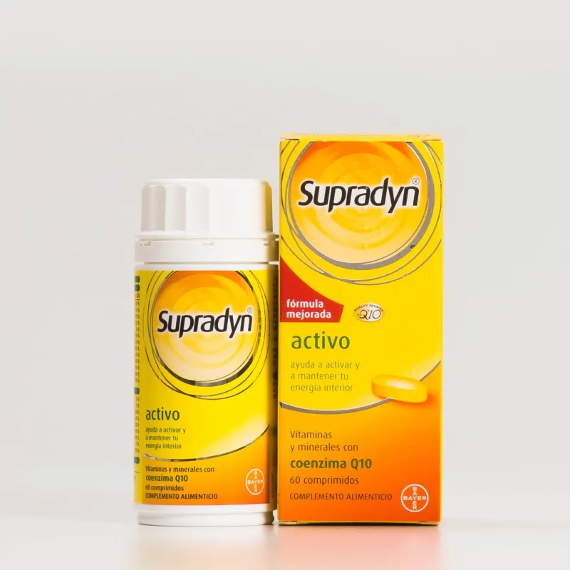 Supradyn Activo es un complemento alimenticio que combina un complejo de vitaminas y minerales esenciales con Coenzima Q10. Su formulación está pensada para colaborar en la transformación de los nutrientes en energía, apoyando el rendimiento físico y mental diario. Además, ofrece un aporte antioxidante que ayuda a proteger las células del daño oxidativo.