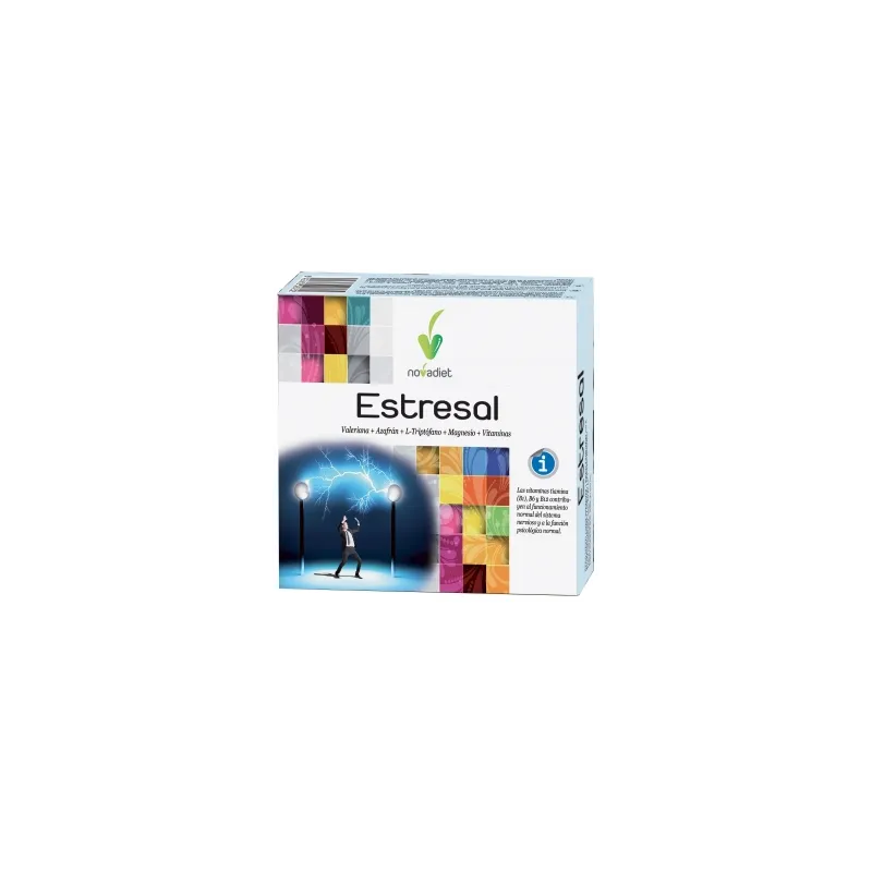 Novadiet Estresal es un complemento alimenticio en cápsulas formulado con ingredientes de origen natural cuyas sustancias pueden contribuir al equilibrio del sistema nervioso y al descanso. Su combinación incluye valeriana, L-triptófano, azafrán y un aporte de vitaminas, con el fin de incorporarse en la rutina diaria como parte de una dieta equilibrada y un estilo de vida saludable, sin atribuir efectos terapéuticos directos al producto.