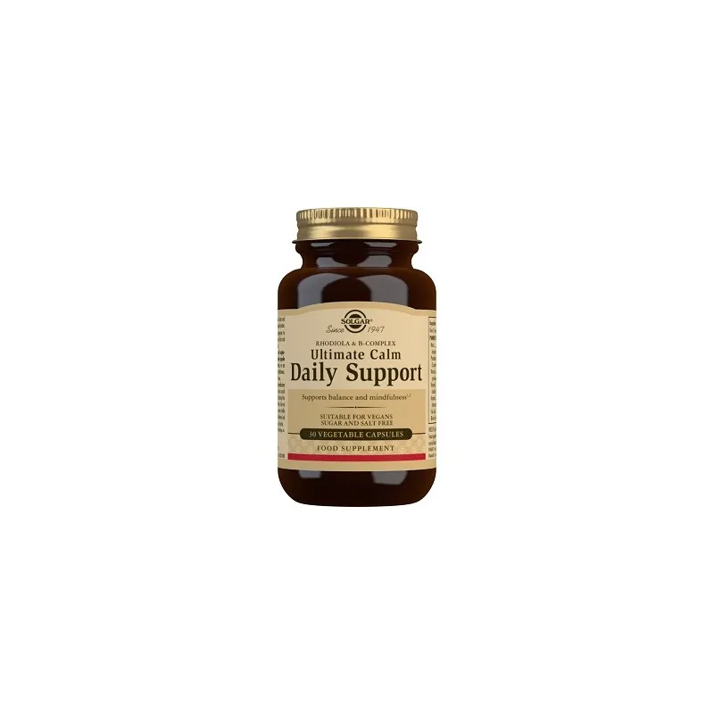 Solgar Ultimate Calma Diario es un complemento alimenticio a base de un complejo B de origen natural (Panmol® B-Complex) y extracto estandarizado de Rhodiola (Rhodiolife®).