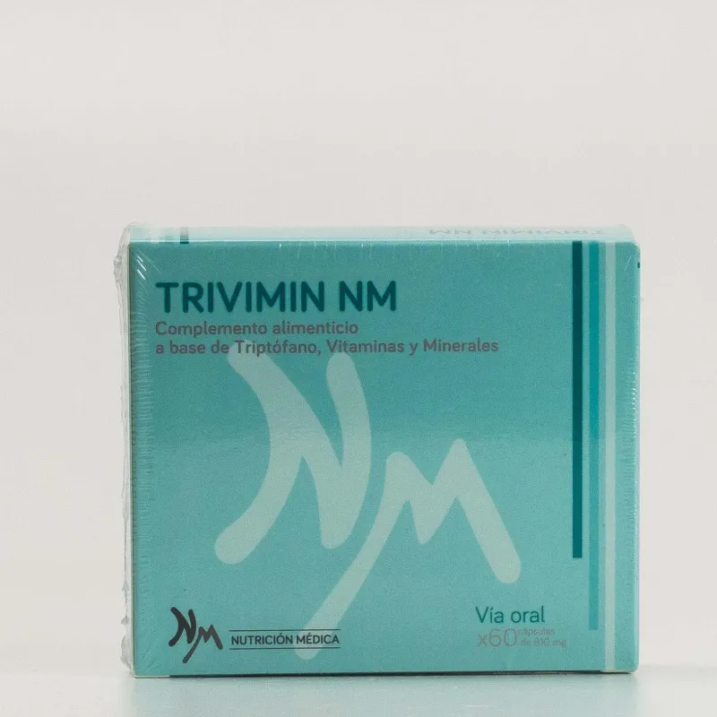 Trivimin Nm es un complemento alimenticio que aporta triptófano, vitaminas del grupo B y minerales esenciales. Sus componentes participan en procesos metabólicos para contribuir al mantenimiento de la salud en situaciones de fatiga o estrés.
