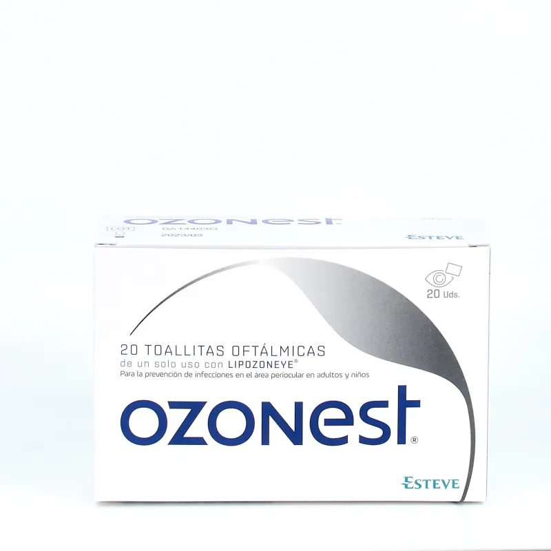 Esteve Ozonest son toallitas oftálmicas testadas clínicamente de tejido suave, bañadas en una exclusiva solución con agentes antibacterianos e ingredientes naturales como aceites esenciales y ácido bórico para ayudar a limpiar eficazmente la zona periocular de secreciones y evitar posibles infecciones.