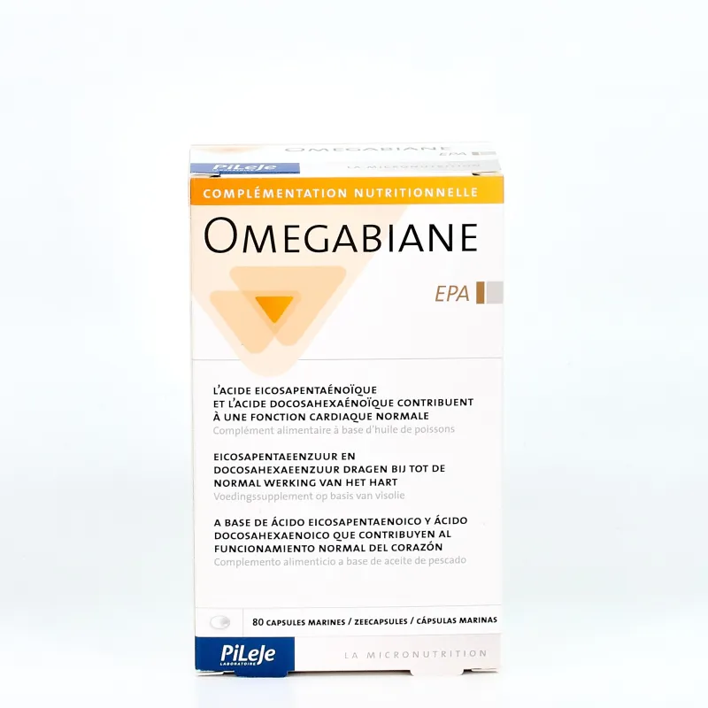 Pileje Omegabiane EPA es un complemento alimenticio elaborado a partir de aceite de pescado rico en ácido eicosapentaenoico (EPA) y extracto natural de romero. Está diseñado para aportar ácidos grasos omega-3 de alta pureza y compuestos fenólicos estables, contribuyendo a complementar la ingesta diaria de estos nutrientes. De acuerdo con el Reglamento (CE) Nº 1924/2006, el EPA contribuye al mantenimiento de la función normal del corazón, mientras que el romero aporta antioxidantes naturales que ayudan a proteger las células del estrés oxidativo. Se presenta en cápsulas de fácil ingestión, pensadas para personas que deseen incorporar estos componentes a su dieta cuando la alimentación habitual no cubra las cantidades recomendadas.