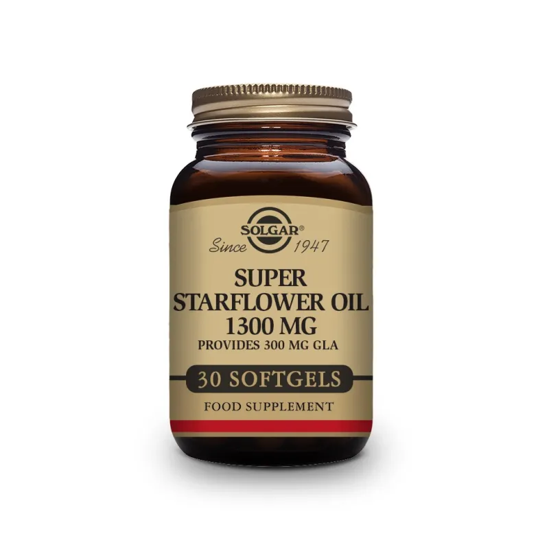 Solgar Aceite Borraja 1300 mg, 60 Cápsulas Blandas es un complemento alimenticio elaborado con aceite extraído de las semillas de borraja, que aporta ácidos grasos esenciales de la serie omega-6 (ácido gamma-linolénico, GLA) y omega-9 (ácido oleico). Se presenta en cápsulas blandas de fácil ingesta, destinadas a complementar la alimentación con lípidos de origen vegetal que el organismo no produce de forma endógena.