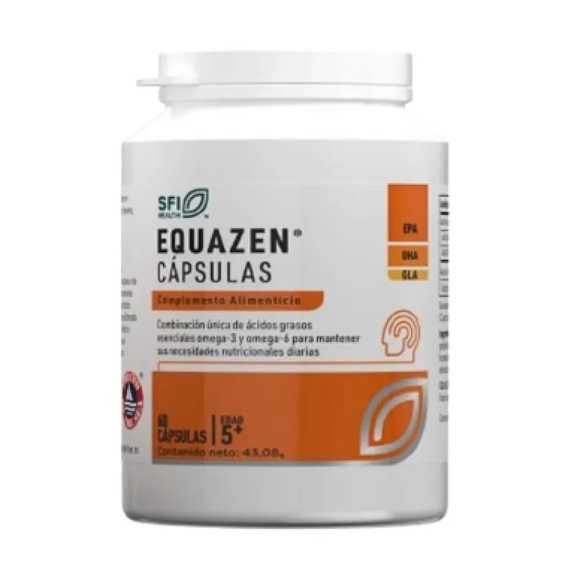 Vitae Equazen 60 cápsulas es un complemento alimenticio masticable con ácidos grasos omega-3 (DHA, EPA) y omega-6 (GLA) procedentes de aceite de pescado y onagra.