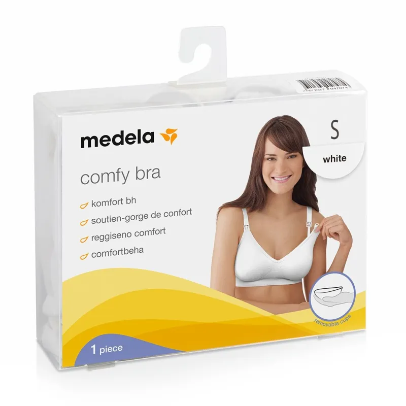Medela Comfy Bra sujetador de embarazo y lactancia blanco viene presentado en una caja que incluye 1 sujetador.