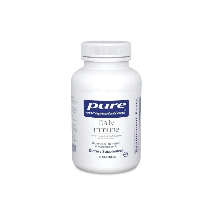 Pure Daily Immune es un complemento alimenticio en cápsulas vegetales diseñado para ofrecer una combinación de vitaminas, minerales y extractos de plantas con el objetivo de apoyar las defensas naturales del organismo. Cada envase contiene 60 cápsulas, proporcionando una fórmula adecuada para dos meses de consumo sin superar la dosis diaria recomendada. Libre de sabores artificiales y aditivos innecesarios.