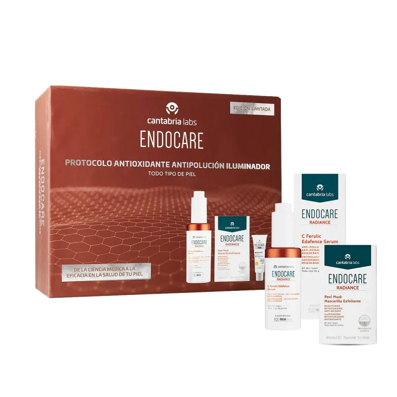 - Endocare Radiance C Ferulic Edafence: Sérum antioxidante de rápida absorción que contribuye a proteger la piel de los dañinos efectos del estrés ambiental como la contaminación y la luz artificial.
