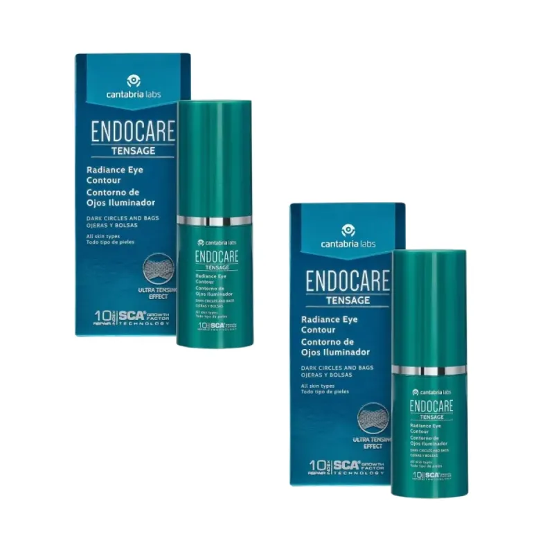 Endocare Tensage Contorno de ojos se presenta en un práctico formato de dos tubos de 15 ml cada uno, lo que permite un uso prolongado y cómodo. Este diseño facilita la dosificación del producto, asegurando que se utilice la cantidad adecuada en cada aplicación. Además, su envase es ideal para llevar en el bolso o de viaje, garantizando que siempre esté a mano para su uso diario.