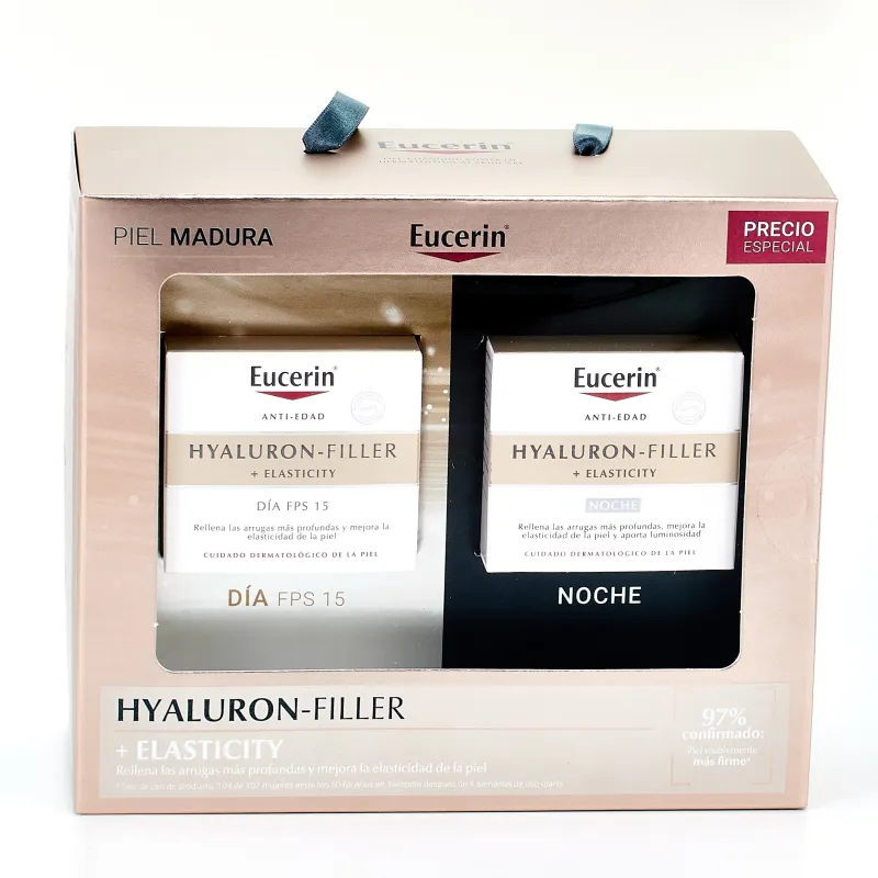 Pack ahorro Eucerin Hyaluron-filler Elasticity Día/Noche, la rutina esencial diaria para todo tipo de pieles.