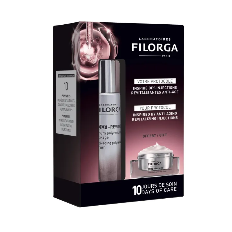 Este pack incluye de regalo una minitalla de Filorga NCEF-Revitalize crema.