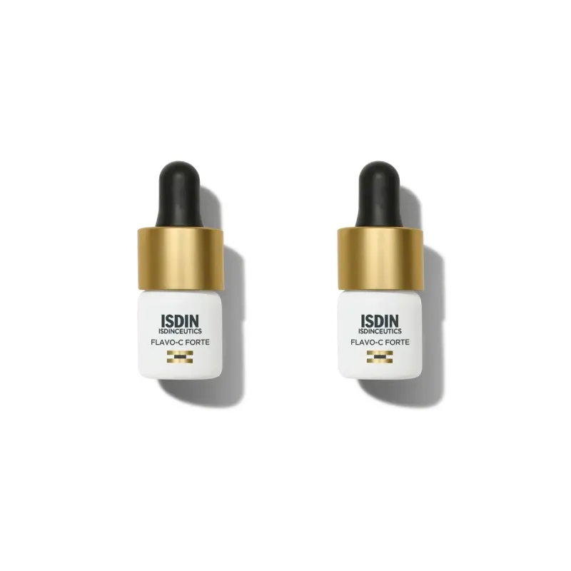 Isdinceutics Flavo C Forte Tratamiento 10 días Duplo es un serum facial intensivo que combina vitamina C pura y fresca con otros ingredientes que ayudan a aportar una acción antioxidante eficaz en la piel. Este tratamiento se presenta en un formato duplo con dos viales diseñados para ofrecer un ciclo de cuidado intensivo de 10 días cada uno, adaptado a quienes desean dar un impulso de luminosidad y confort a su piel dentro de una rutina dermocosmética orientada al cuidado diario.