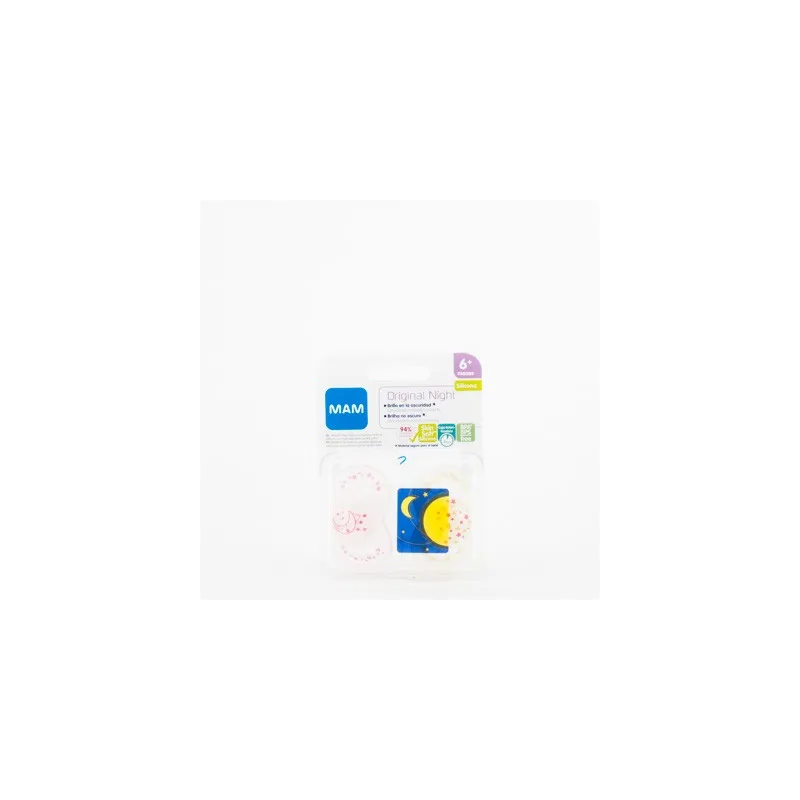 ¿Qué es MAM Chupete Silicona Original Night +6M Pack Doble Rosa?