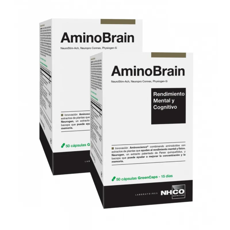 AminoBrain es un complemento alimenticio formulado para aportar una mezcla de aminoácidos esenciales, extractos vegetales y micronutrientes. Su propuesta combina ingredientes seleccionados para contribuir al funcionamiento normal del sistema nervioso y apoyar la respuesta ante situaciones de demanda cognitiva. Su formulación fue desarrollada tras estudios de combinación de ingredientes que buscan optimizar la biodisponibilidad de los nutrientes. Los aminoácidos presentes participan en la formación de estructuras proteicas y en el mantenimiento de procesos metabólicos. Además, incorpora vitaminas del grupo B que contribuyen al metabolismo energético normal y al mantenimiento de funciones fisiológicas básicas. Se presenta en un formato de cápsulas de fácil deglución, diseñado para un uso diario.