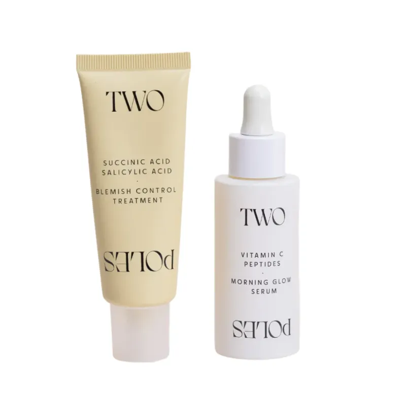 El Dúo Blemish & Glow de Two Poles incluye dos productos complementarios: Blemish Control Treatment y Brightening Serum. Este conjunto está pensado para pieles que presentan imperfecciones visibles como brotes, poros dilatados, marcas de acné o un tono apagado, y para quienes buscan una rutina eficaz que combata tanto las causas como las consecuencias de estas alteraciones cutáneas.