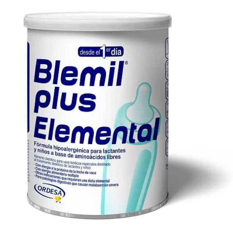 Blemil Plus Elemental viene en un envase de 400g, práctico y seguro para preservar su calidad.