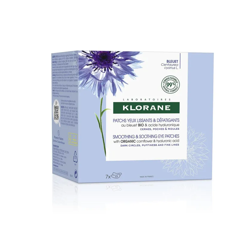 Klorane Parches Alisantes Desfatigantes al Aciano son parches oculares de uso cosmético, diseñados para disminuir la congestión del tejido dérmico afectado por la fatiga o por la prolongada exposición al sol.