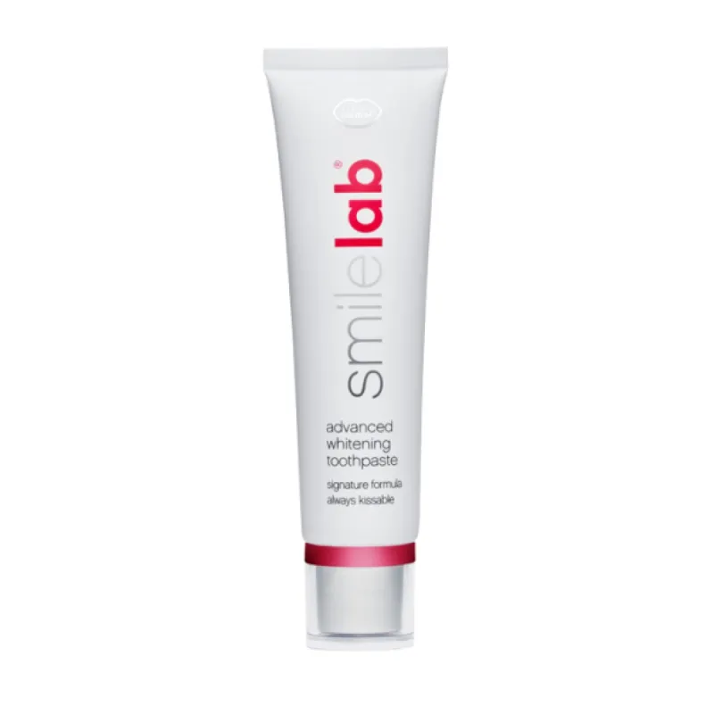 Smilelab Signature Whitening Toothpaste se presenta en un tubo de 75 ml, ideal para llevar contigo a todas partes. Su envase compacto y práctico facilita su uso diario y su almacenamiento de forma segura.