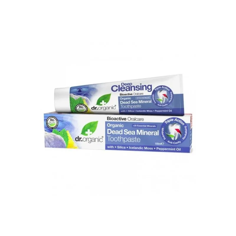 Dr. Organic Pasta de dientes de minerales del Mar Muerto es un potente dentífrico que protege contra la placa, el sarro, la gingivitis y las caries.