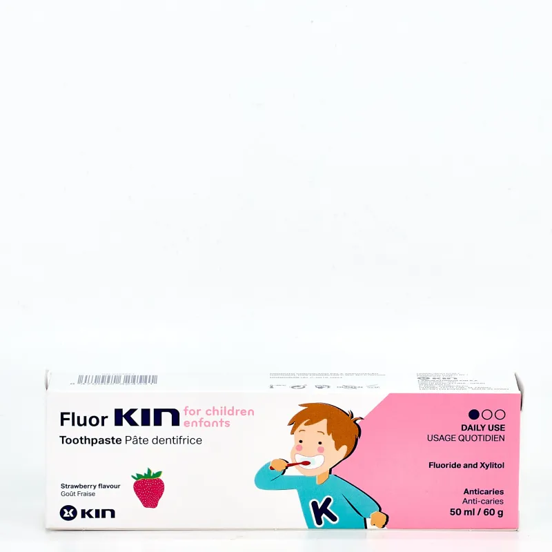 Fluor Kin Pasta Dental Infantil Fresa es un producto de higiene bucal diseñado para niños de 2 a 6 años.