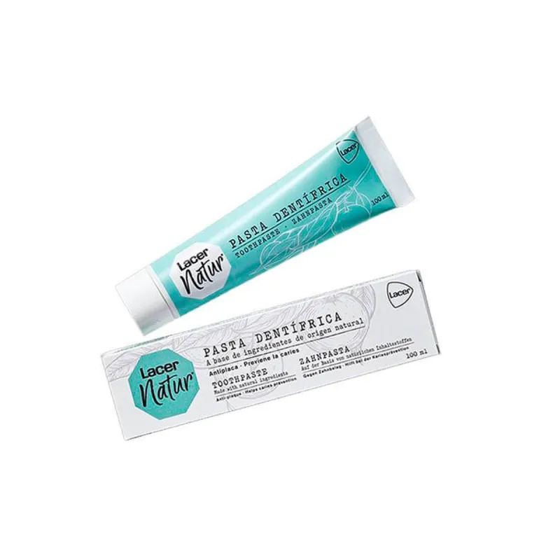 La pasta dentífrica Lacer Natur destaca por su empaque de papel reciclado y por sus extractos vegetales 100% naturales. Esta fórmula no tiene mentol en su composición, está indicada para niños mayores de 7 años y adultos con ciertas alergias.