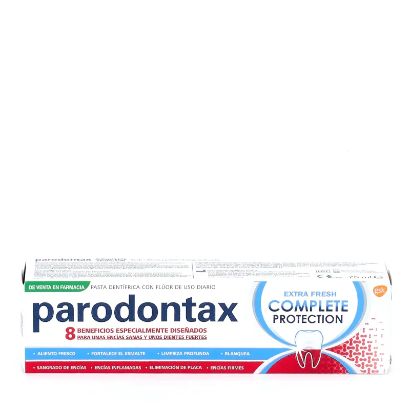 Parodontax Complete Extra Fresh es una Pasta Dental de uso diario que contiene Fluor y ofrece una protección completa de tus dientes.
