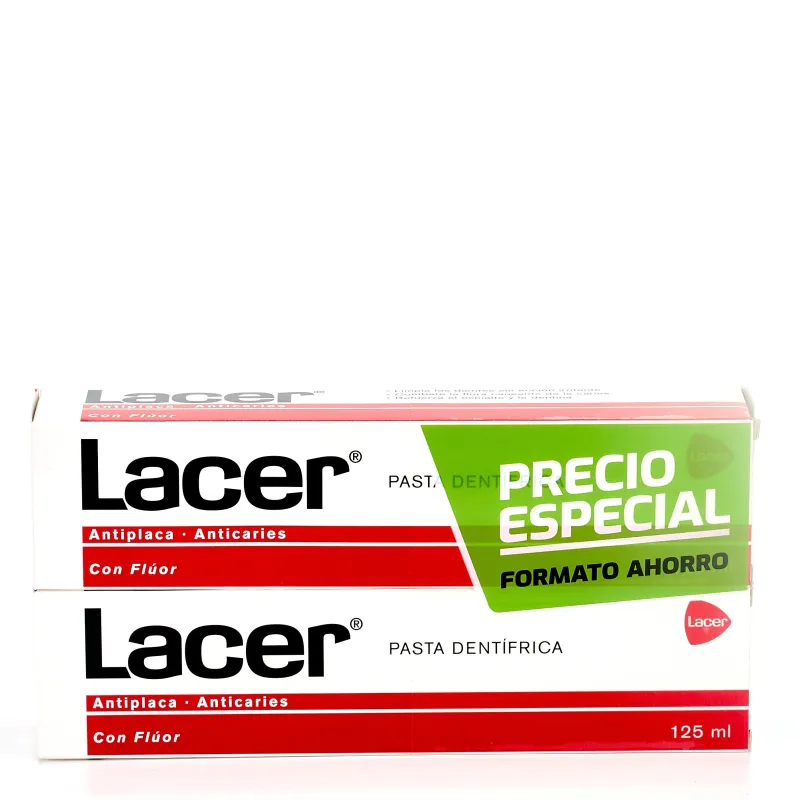 La Pasta de dientes Lacer tiene acción antiplaca, y posee Flúor, por lo que ayuda a prevenir la aparición de caries.