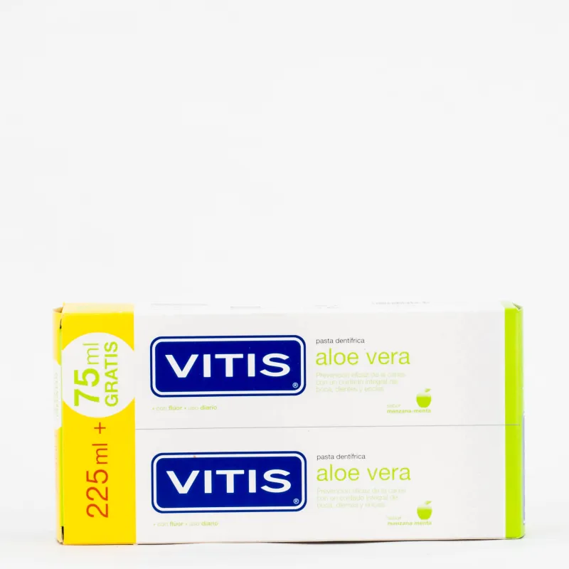 Vitis Aloe Vera Pasta Dental Duplo Sabor Manzana-Menta, 255+75ml GRATIS.