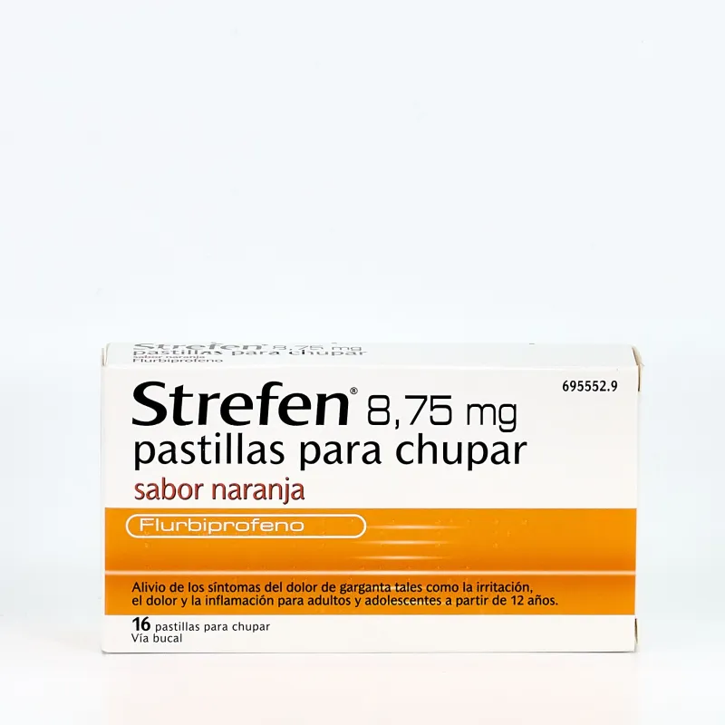 Strefen contiene flurbiprofeno. El flurbiprofeno pertenece a un grupo de medicamentos denominados antiinflamatorios no esteroideos (AINEs) que tienen propiedades analgésicas, antipiréticas y antiinflamatorias. Se utiliza para el alivio de los síntomas del dolor de garganta tales como irritación, dolor, dificultad para tragar e inflamación de garganta en adultos y adolescentes a partir de 12 años.
