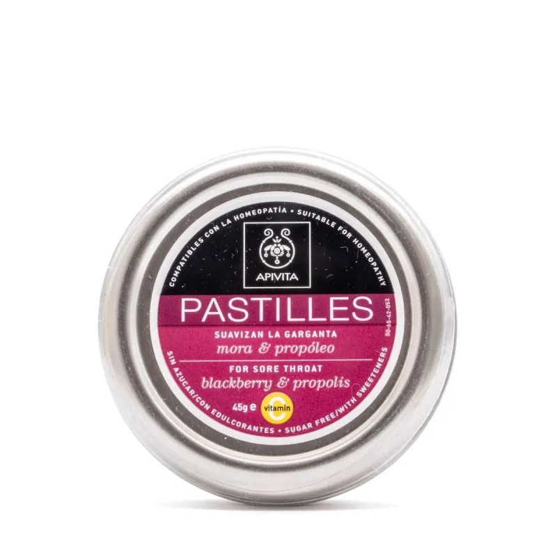 Las pastillas de mora y propóleo de Apivita son un complemento alimenticio ideal para intentar ayudar a aliviar el dolor de garganta, combinando los beneficios naturales del extracto de mora, propóleo y vitamina C. Estas pastillas son una opción saludable para cuidar tu garganta y fortalecer tu sistema inmunológico.