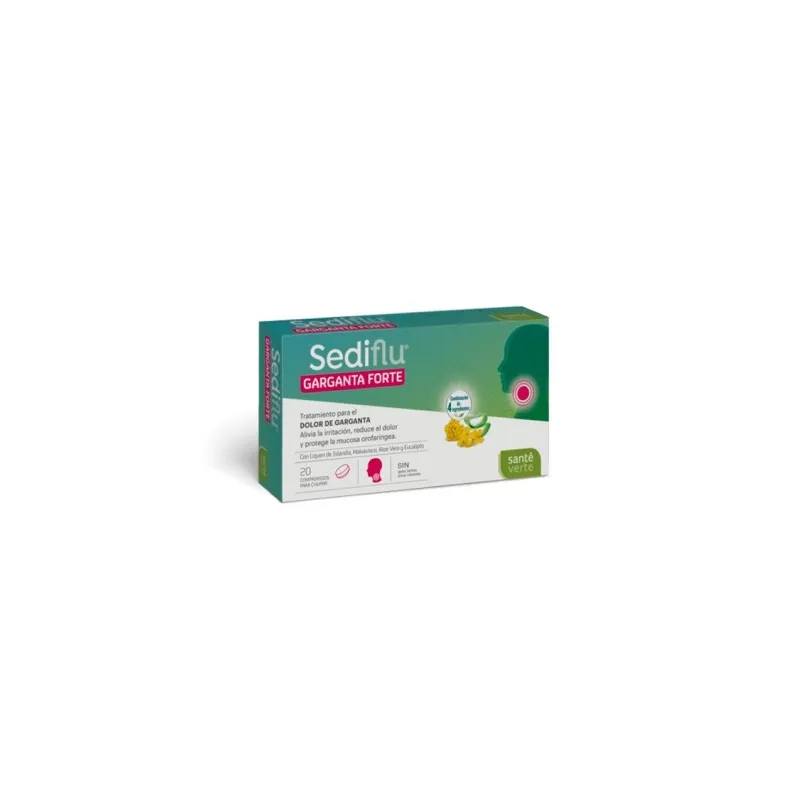 Sediflu Garganta Forte de Santé Verte es un complemento en formato de comprimidos para chupar, diseñado para aliviar el malestar y la irritación de la garganta. Formulado con una combinación de ingredientes naturales, estos comprimidos aportan una acción calmante y protectora para la garganta irritada.