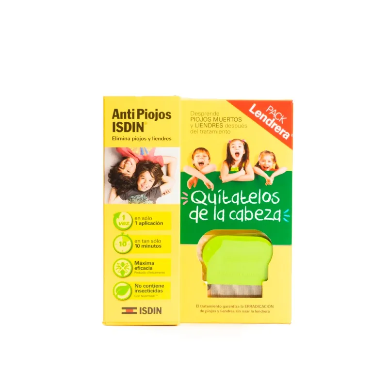 El pack Antipiojos de ISDIN incluye un Gel con lendrera, que garantiza la eliminación de piojos y liendres con una sola aplicación en 10 minutos.