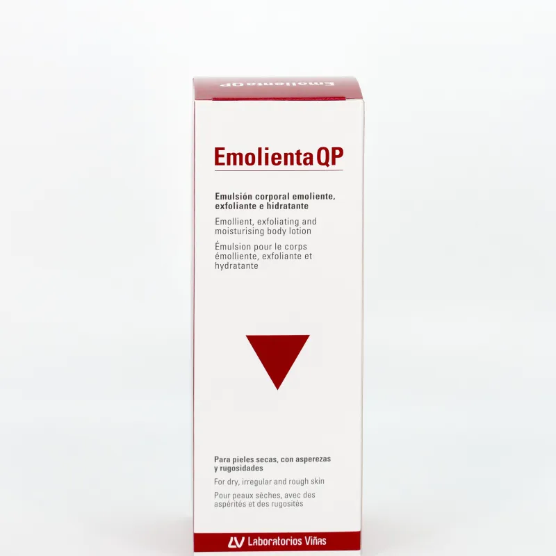 Emolienta QP es una emulsión corporal especialmente diseñada el cuidado de las pieles secas con asperezas o rugosidad gracias a su acción exfoliante, que deja la piel lisa.