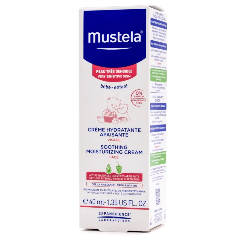 Mustela Crema Facial Hidratante Calmante, es una crema altamente hidratante y nutritiva ideal para eliminar y evitar las molestias asociadas a las pieles infantiles intolerantes y reactivas.