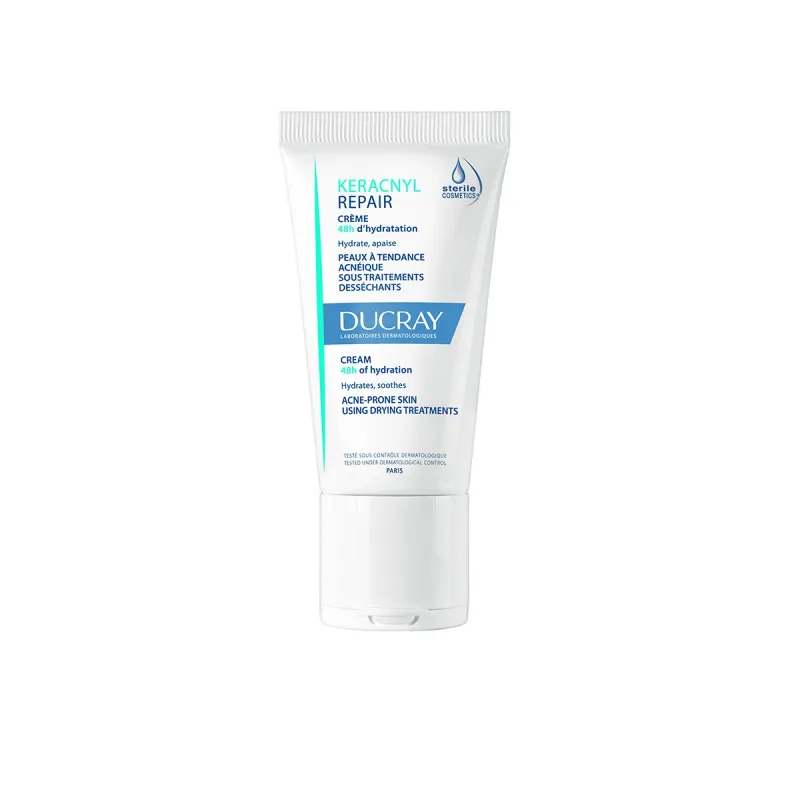 Keracnyl Repair hidrata, repara y alivia las pieles bajo tratamiento para eliminar el acné y regular la producción de grasa.