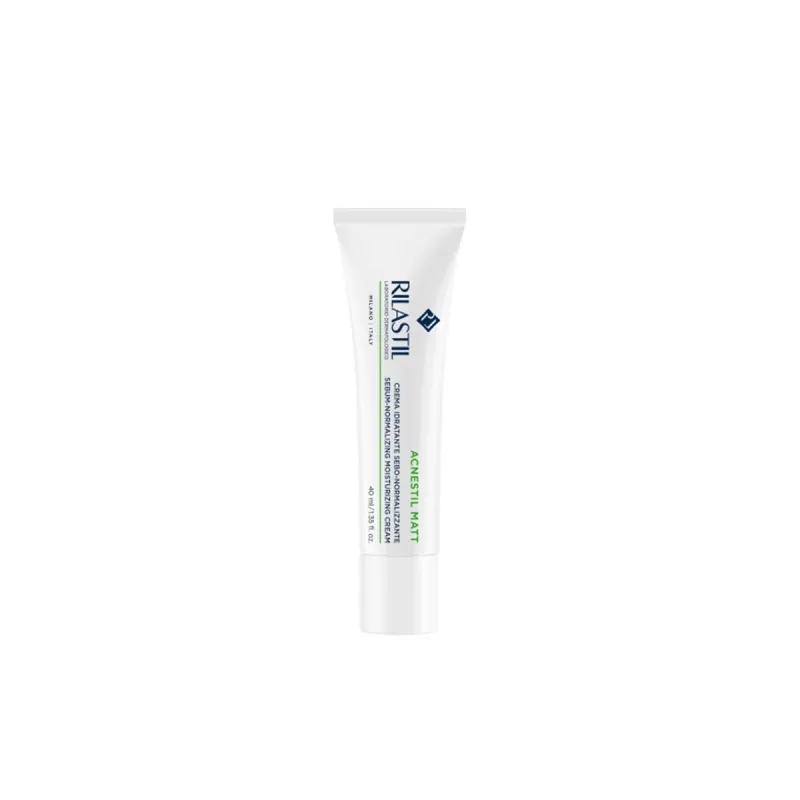 Rilastil Acnestil Matt es un producto cosmético especialmente indicado para el cuidado diario de la piel sensible, mixta, grasa y con tendencia acneica. Su fórmula contiene activos naturales entre los que destacan la niacinamida, el phantenol y la glicerina, gracias a los cuales ofrece un efecto sebo regulador que puede apoyar la disminución de los poros dilatados.