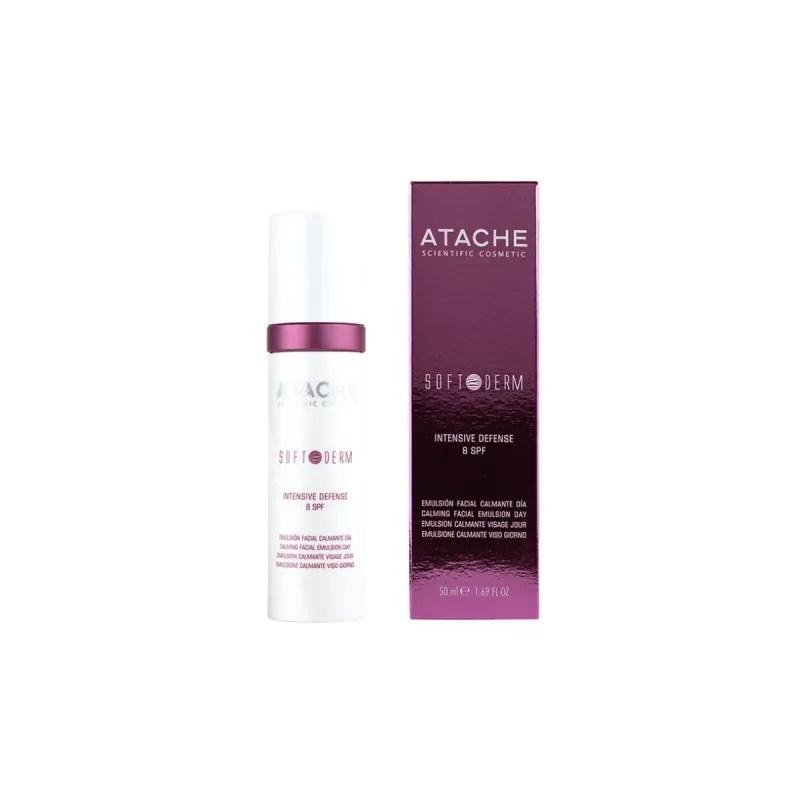 Atache Soft Derm Intensive Defense 8 SPF, brinda factor de protección contra los rayos solares mientras descongestiona y restaura las pieles delicadas.