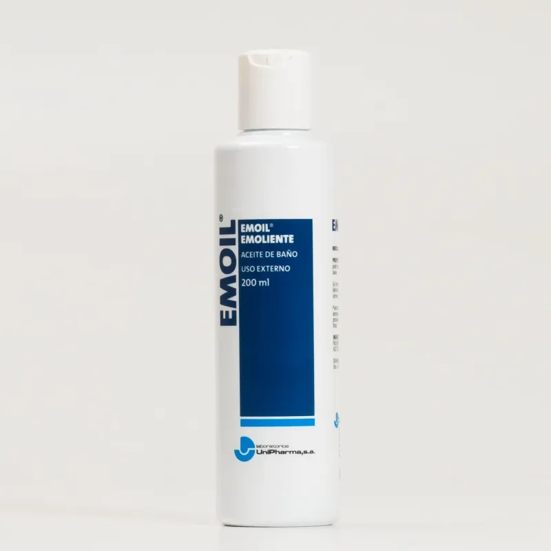 Emoil es un aceite de baño que proporciona a la piel los nutrientes necesarios para mantener la suavidad y la hidratación de la piel y reducir la descamación. Está especialmente diseñada para personas con la piel muy seca y es muy efectiva para casos de ictiosis congénita, una sequedad muy elevada de la piel que produce eccemas e irritaciones, para dermatitis de contacto y pieles sensibles y descamadas.