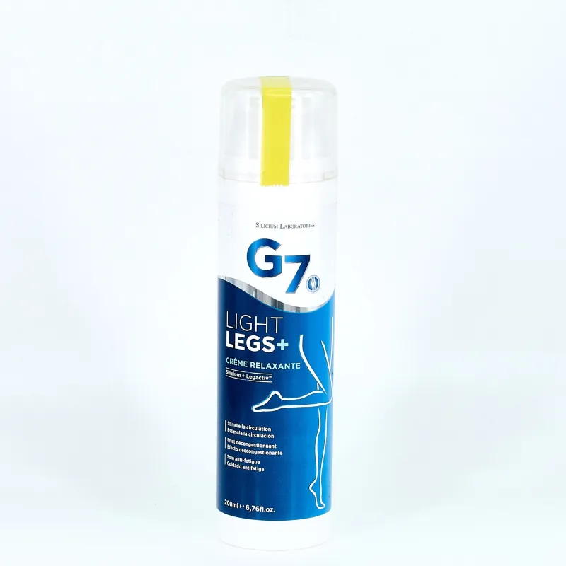 G7 Light Legs 200 ml es una crema natural formulada con aceites esenciales selectos, extracto de castaño de indias y silicio orgánico de quinta generación. Está especialmente concebida para proporcionar una sensación de frescor y alivio en piernas, tobillos y pies tras períodos de fatiga o inactividad prolongada.