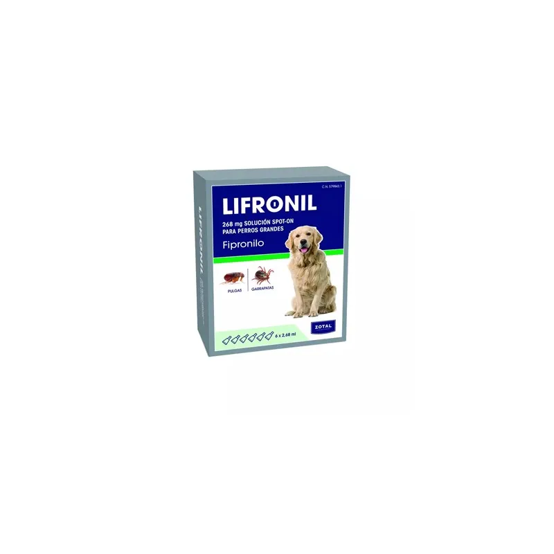 Lifronil Pipeta para Perros 20-40 Kg es una solución para unción dorsal puntual que viene en un blíster de 6 pipetas de 268 mg de Fipronilo. Este producto se destina específicamente para el cuidado de perros que pesan entre 20-40 kg y que sufren de infestaciones por pulgas y garrapatas.