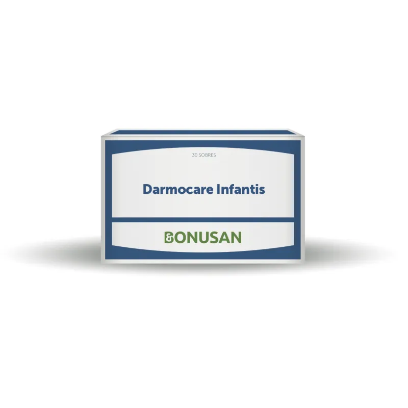 Bonusan Darmocare Infantis es un complemento alimenticio de uso pediátrico formulado con una mezcla específica de cepas bacterianas vivas cultivadas para contribuir al equilibrio de la flora intestinal infantil. Indicado para restablecer la microbiota tras situaciones que puedan alterar su composición natural, su presentación en sobres facilita la administración diaria en niños y bebés. Cada dosis contiene Lactobacillus rhamnosus y Bifidobacterium breve en proporciones adecuadas para apoyar la diversidad microbiana. Se recomienda su uso en periodos de cambios dietéticos, tras tratamientos médicos que puedan afectar la flora o en situaciones de desequilibrio intestinal leve.