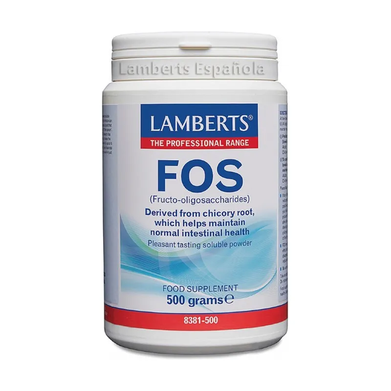 LAMBERTS FOS (Eliminex) es un complemento alimenticio en polvo a base de fructo-oligosacáridos (FOS) obtenidos de la raíz de achicoria. Sus ingredientes fertilizan el crecimiento de bifidobacterias y lactobacilos en el intestino, apoyando el mantenimiento de una flora intestinal equilibrada. Se presenta como un polvo soluble, de sabor ligeramente dulce, que puede mezclarse en bebidas frías o calientes, espolvorearse sobre cereales o incorporarse a sopas y guisos.