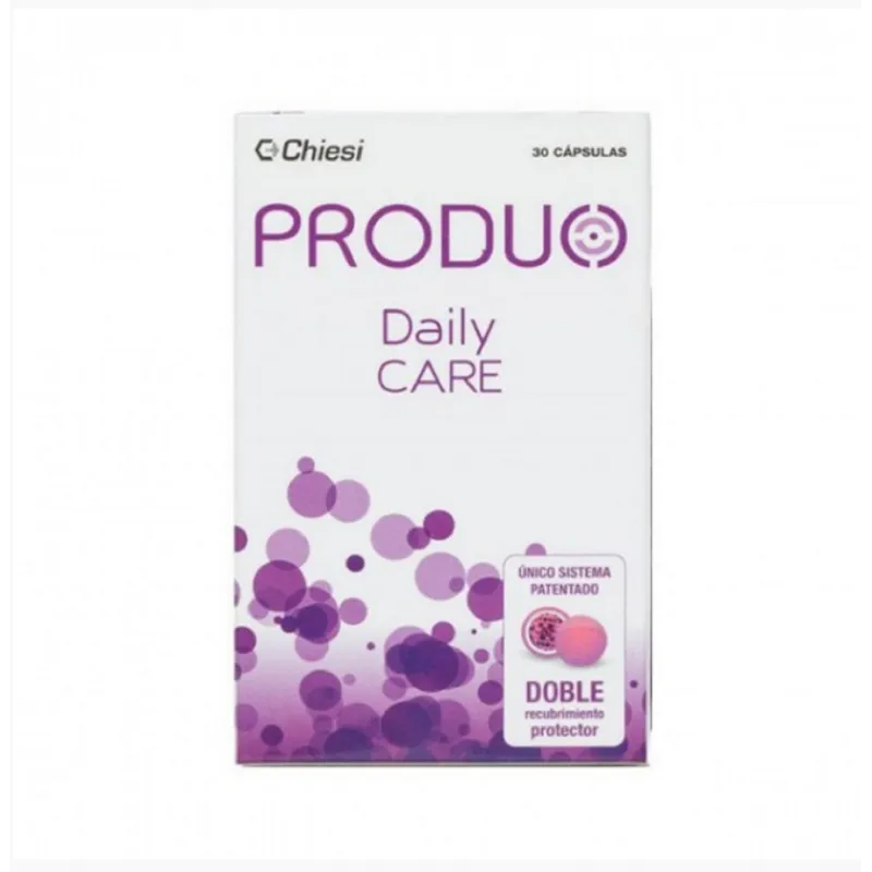 Produo Daily CARE es un complemento alimenticio formulado para el mantenimiento diario de la microbiota intestinal. Contiene una combinación de cepas de Lactobacillus y Bifidobacterias con recubrimiento doble protección que contribuye a la viabilidad de los microorganismos hasta su llegada al intestino. Además, integra vitamina C, un nutriente con función antioxidante que contribuye al funcionamiento normal del sistema inmunitario. Este producto está diseñado para su administración cotidiana y permite reforzar la presencia de bacterias beneficiosas en el tracto digestivo.