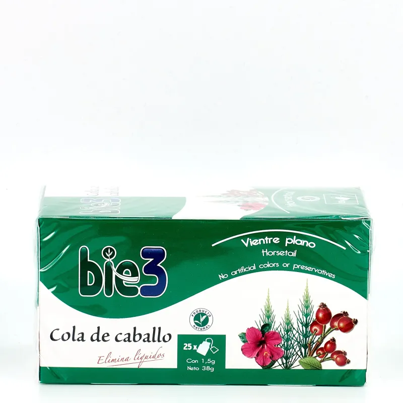 Bie3 Cola de Caballo es una infusión elaborada con plantas seleccionadas: equisetum arvense, malva sylvestris e hibiscus sabdariffa. Está pensada para su consumo como bebida caliente o fría en el contexto de una dieta equilibrada.
